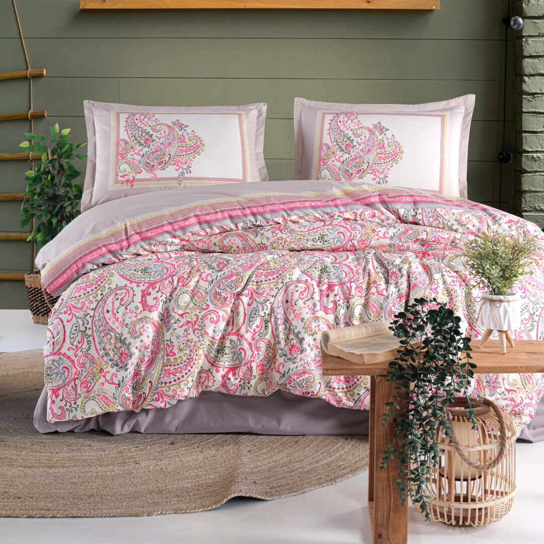 - Комплектация: 2 наволочки (50×70 см), 1 пододеяльник (200×220 см), 1 простынь (240×260 см)